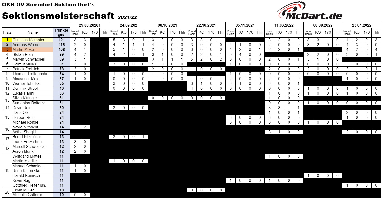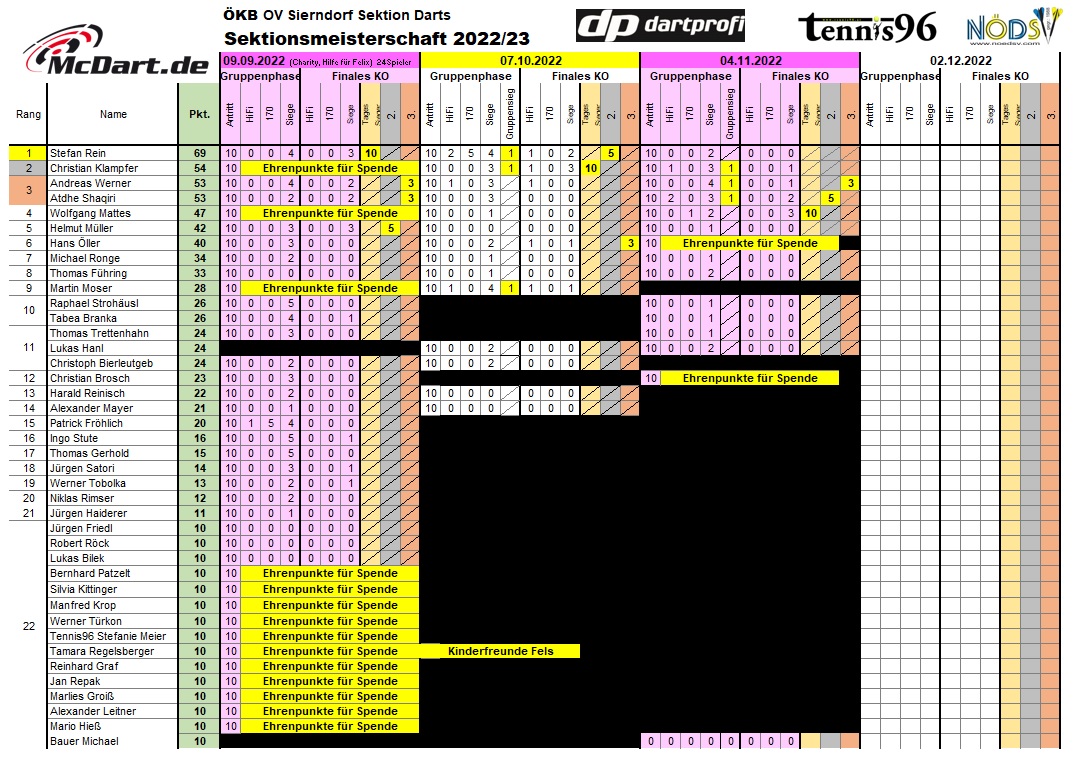 Unsere gemeldeten Mannschaften: Iron Boyz, Die Checker, PREDARTERS, Bernis Burning Darts